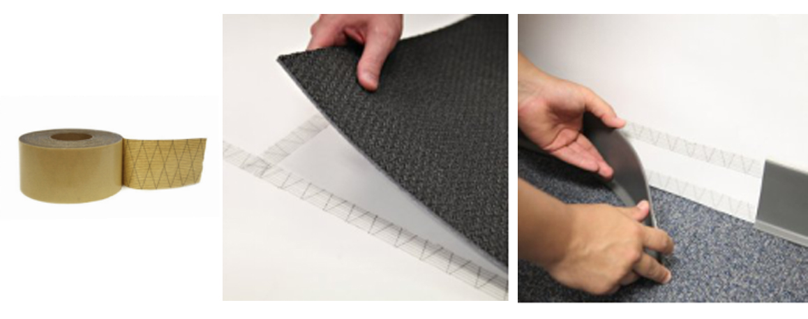 Double Sided Scrim Reinforced Tape is ideal for adhering flooring, molding, trim and baseboards. It's strong, odor free, non toxic,and extra tacky �C sticking to almost any surface. Lays out flat and fast with an easy to remove liner backing.